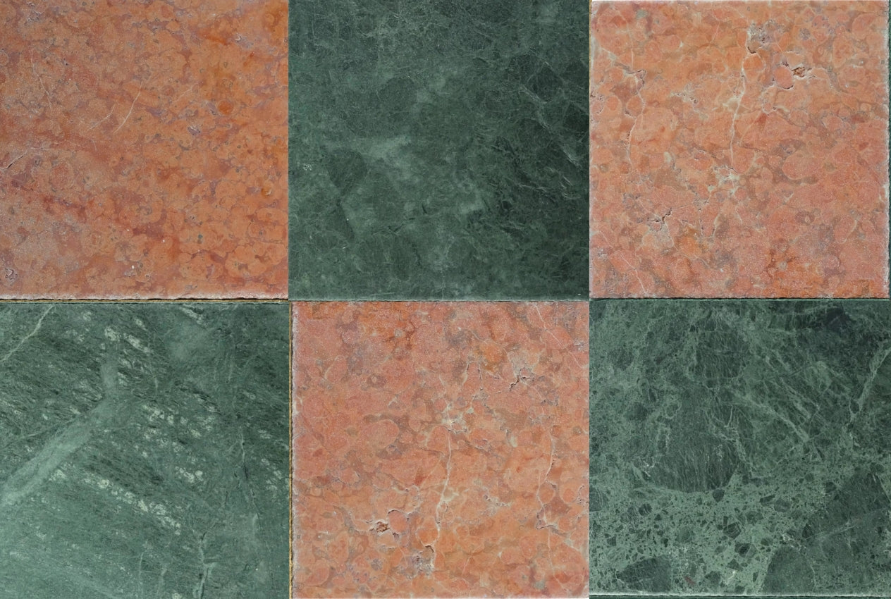 Green and Red Antique Marble Checkerboard Tile Set – 12x12